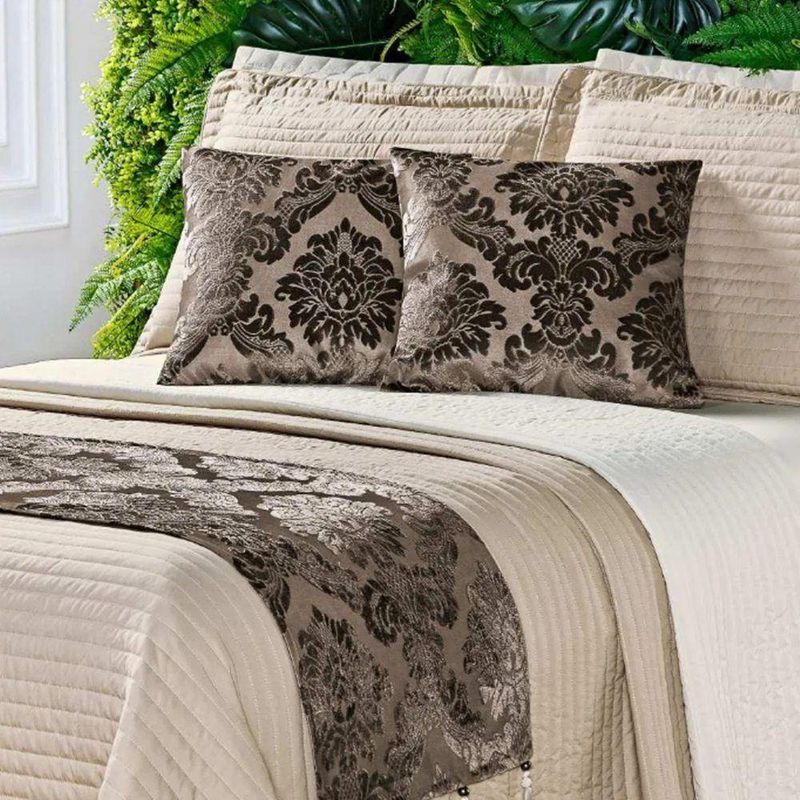 Conteúdo Embalagem:01 - Cobre Leito Dupla Face 2,80m x 2,70m02 - Porta Travesseiros (lisos) 75cm x 55cm02 - Capas de Almofadas ;45cm x 45cm02 ;- Refis de Almofadas (siliconadas) 45cm x 45cm01 - Xale com Pedraria 2,40m x 45cmComposição:Tecido Micropercal 200 Fios: 100% PoliésterEnchimento: 100% ;PoliésterXale e Almofadas: ;Tecido JacquardImagens Ilustrativas. Apenas itens descritos acima, compõem o produto. Demais itens, podem ser adquiridos separadamente.Atenção: Certifique-se que as medidas do produto atende as dimensões da cama a qual será utilizado. ;