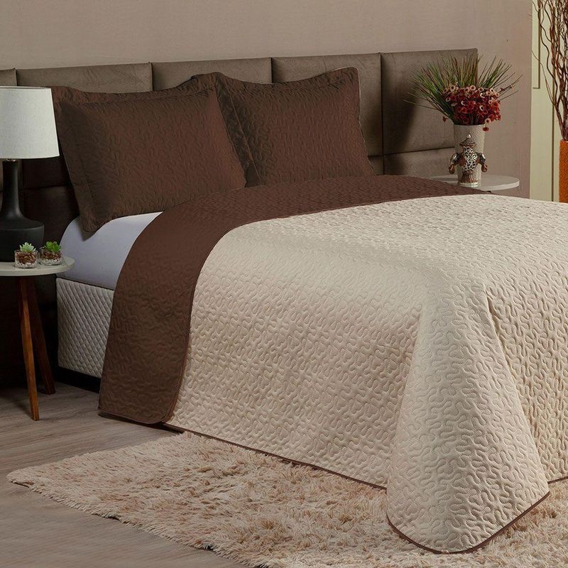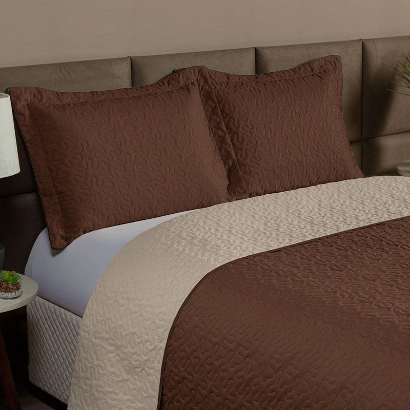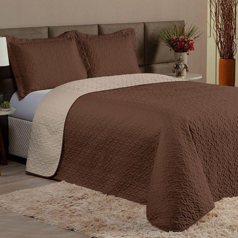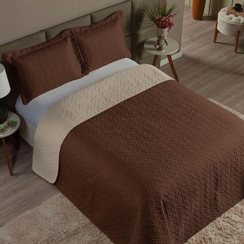 Cobre Leito Queen 3 Peças Clara 100% Poliéster - Marrom/cáqui