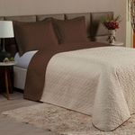 Design Sofisticado: Este cobre leito é meticulosamente matelado, criando um padrão de caminho sem fim que confere um toque de sofisticação à sua cama. Além disso, o porta travesseiro apresenta um elegante debrum que completa a decoração com estilo.