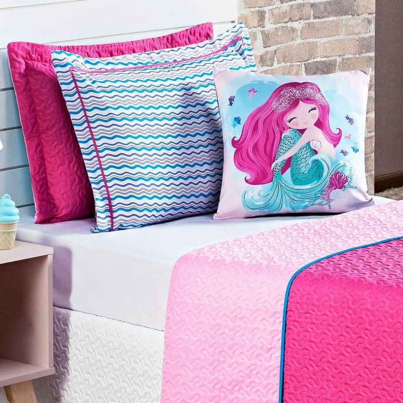 Cobre Leito Sereia Pink Dupla Face C/ Almofada Solteiro 04 Peças