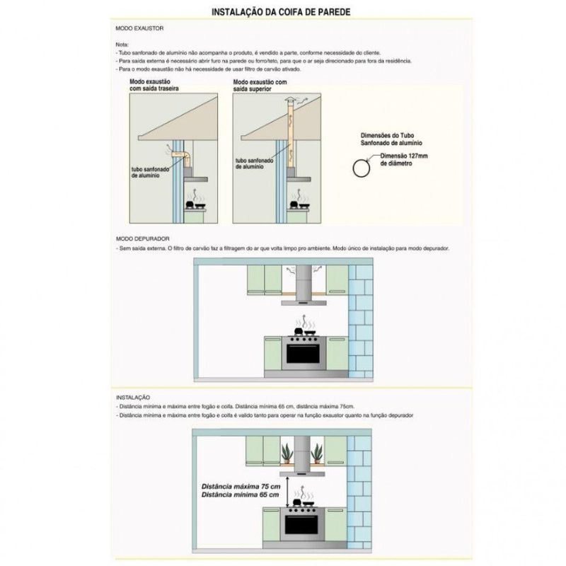 Observacao, este modelo nao aceita instalacao no teto. Caso precise de coifa para instalar no teto, basta pesquisar por Coifa de ilha, e colocar a marca desejada