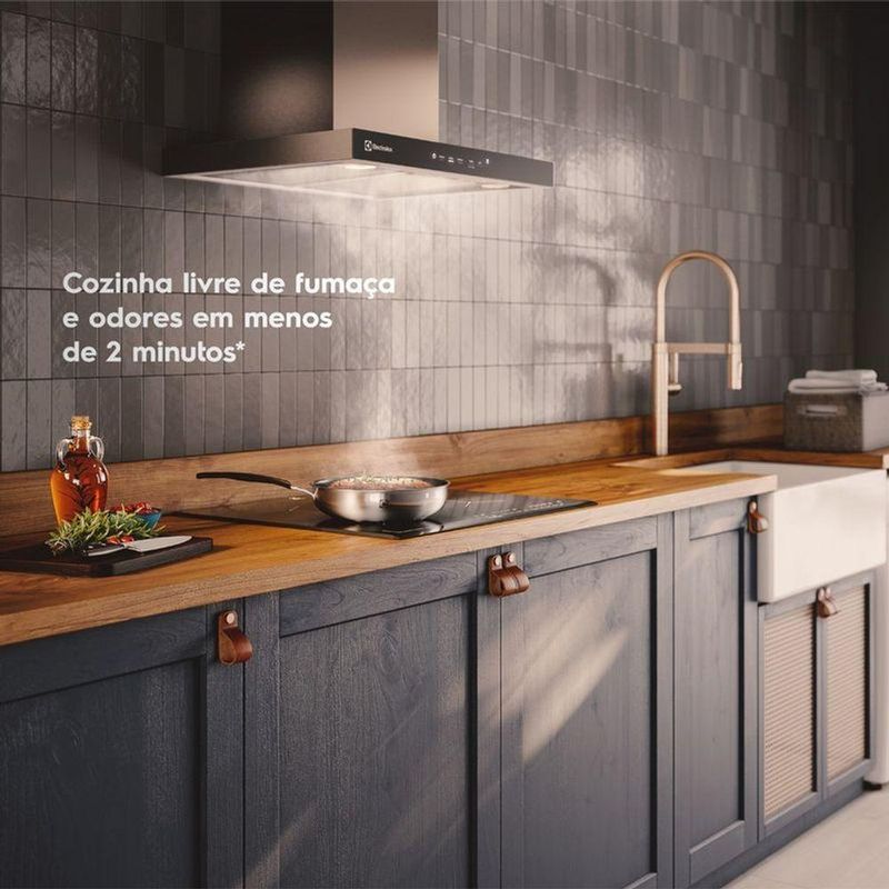 Coifa De Parede Electrolux 90cm Inox Inteligência Artificial Ce9tf 110v 29909tba189 Coifa de Parede Electrolux 90cm Inox Experience com Inteligência Artificial e Alto Poder Sucção (CE9TF) A coifa de parede Electrolux 90cm Inox Experience com Inteligência Artificial e Alto Poder Sucção (CE9TF) é o produto ideal para quem busca alta eficiência na captura de fumaças e gorduras, além de design moderno e sofisticado. Com um potente motor, a coifa oferece alto poder de sucção, renovando o ar da cozinha em menos de 2 minutos. Além disso, conta com a função 2 em 1, que permite alternar entre os modos exaustor e depurador, de acordo com a necessidade. A coifa CE9TF também conta com a exclusiva tecnologia Hob2Hood, que conecta automaticamente a coifa ao cooktop, identificando a utilização do cooktop, o número de zonas em uso, e liga e configura o exaustor automaticamente. Para completar, a coifa possui painel full touch com controle intuitivo, luz LED para iluminar o fogão, e filtros de carvão ativado e metal que garantem a eficiência da filtragem. Características:Alto poder de sucção (1000 W)Função 2 em 1 (exaustor ou depurador)Tecnologia Hob2HoodPainel full touchLuz LEDFiltros de carvão ativado e metalDimensões e peso:Mín - 44.0 / Máx - 82.0 cmLargura: 89,5 cmProfundidade: 45 cmPeso: 17,8 kgGarantia:1 anoAqui estão alguns benefícios da coifa de parede Electrolux 90cm Inox Experience com Inteligência Artificial e Alto Poder Sucção (CE9TF):Alta eficiência na captura de fumaças e gorduras: O potente motor de 1000 W e o sistema de filtros de alta eficiência garantem que a cozinha fique sempre limpa e livre de odores.Design moderno e sofisticado: O acabamento em aço escovado e o design clean e minimalista combinam com qualquer decoração.Conforto e praticidade: A função 2 em 1, o painel full touch e a luz LED oferecem conforto e praticidade no dia a dia.Se você está procurando uma coifa de parede que ofereça alta eficiência, design moderno e praticidade, a Electrolux 90cm Inox Experience com Inteligência Artificial e Alto Poder Sucção (CE9TF) é a escolha ideal para você.