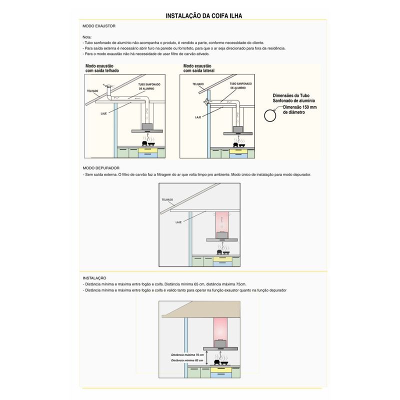 Atenção O Tubo sanfonado para exaustão, NÃO acompanha o produto, Vendemos o tubo separadamente. O diâmetro de saída para o mesmo é de 150 mm de circunferência