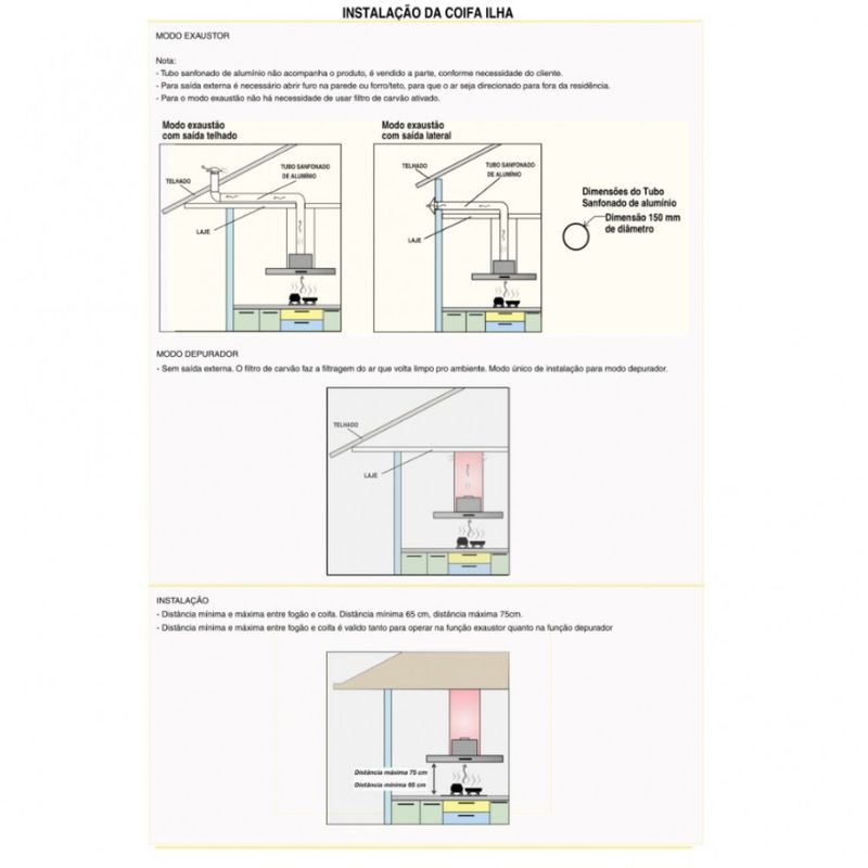 Atenção O Tubo sanfonado para exaustão, NÃO acompanha o produto, Vendemos o tubo separadamente. O diâmetro de saída para o mesmo é de 150 mm de circunferência