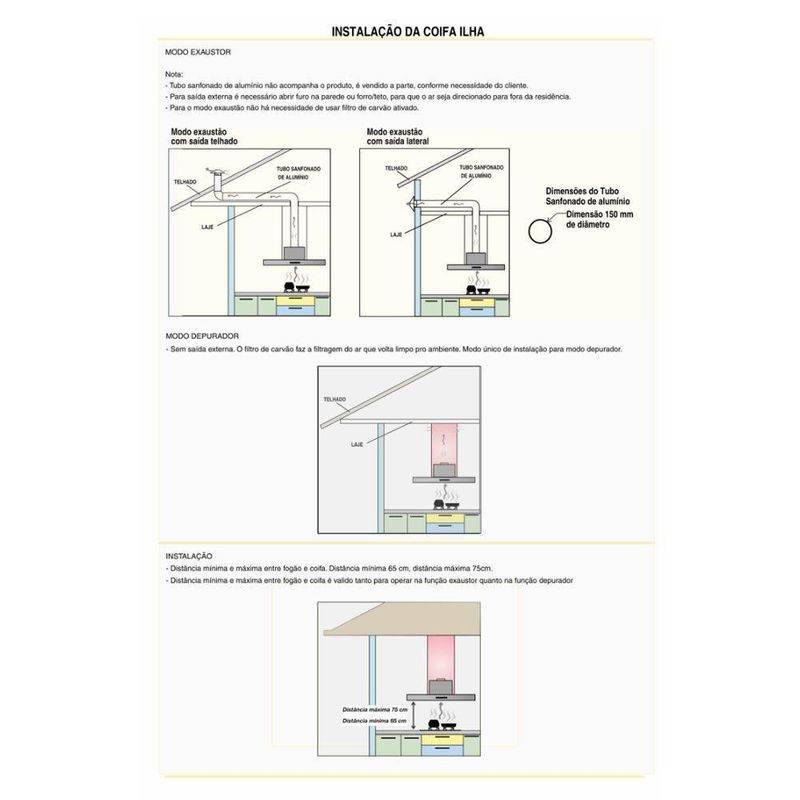 Atencao O Tubo sanfonado para exaustao, NAO acompanha o produto, Vendemos o tubo separadamente. O diametro de saida para o mesmo e de 150mm de circunferencia