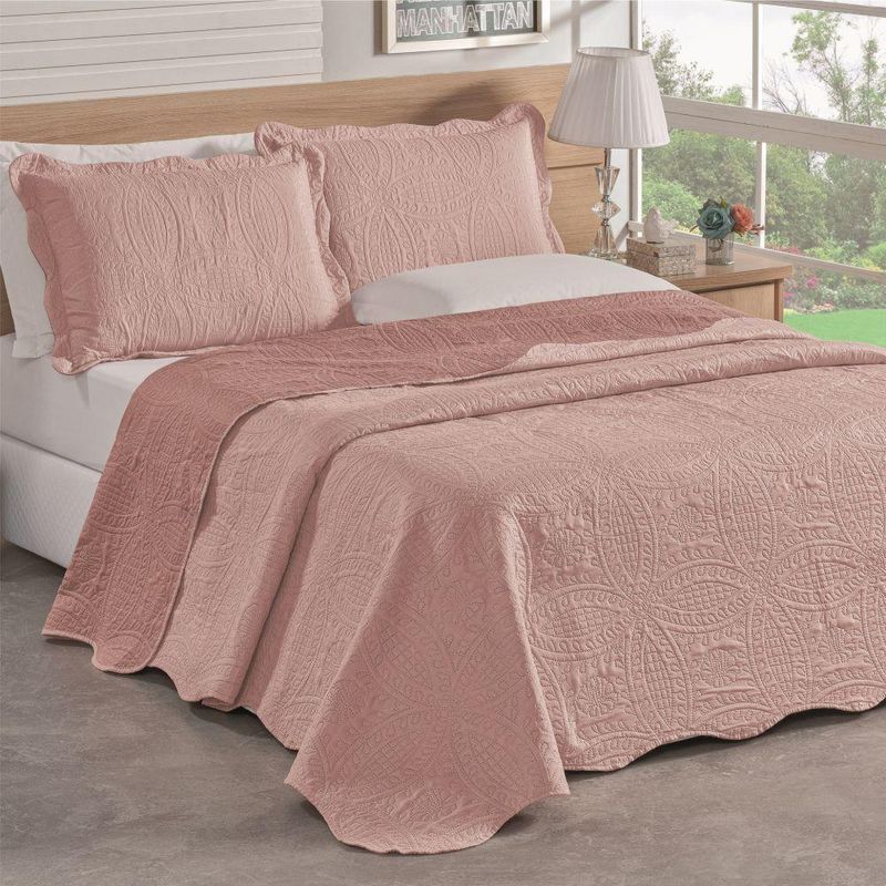Colcha King Bella Dupla Face 03 Peças - Rosê - 100% Poliéster