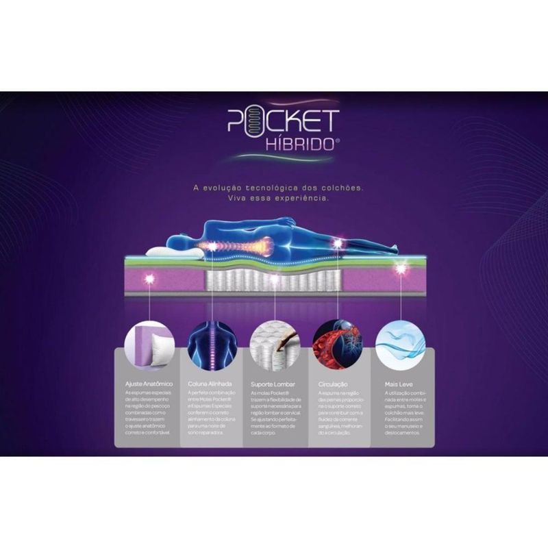 Colchão Casal Molas Ensacadas Pocket Revolution Híbrido Pillow (138x188x27) - Castor