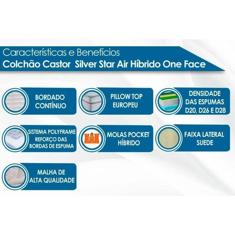 Colchão Casal Molas Ensacadas Pocket Silver Star Air Híbrido Euro Pillow (138x188x32) - Castor