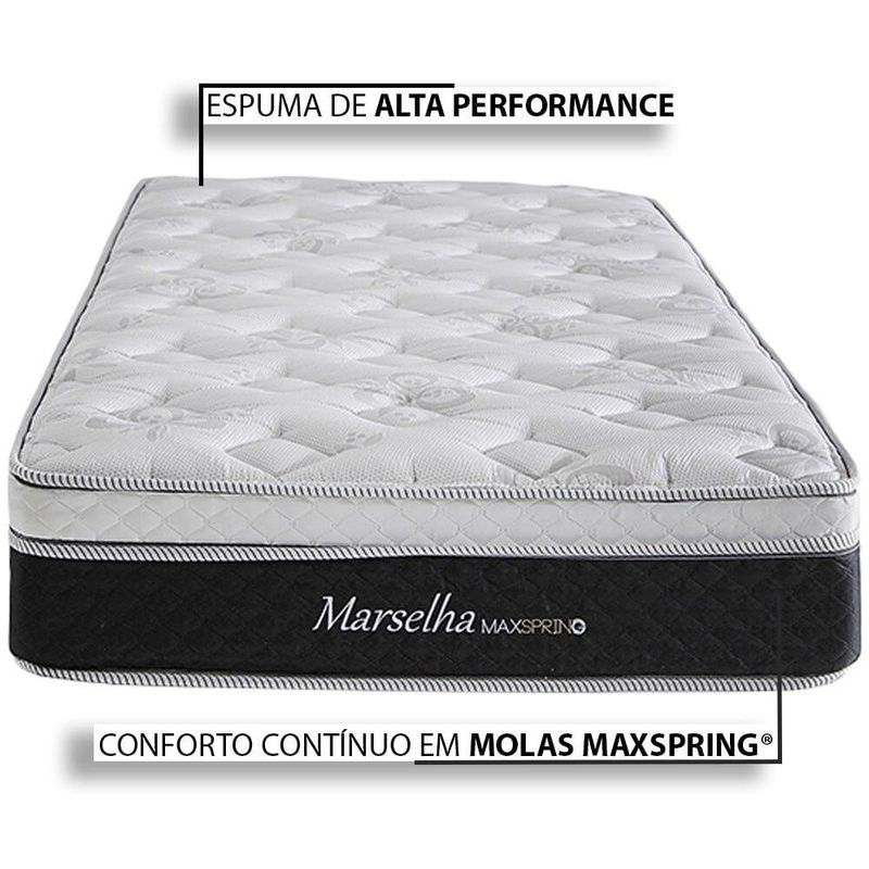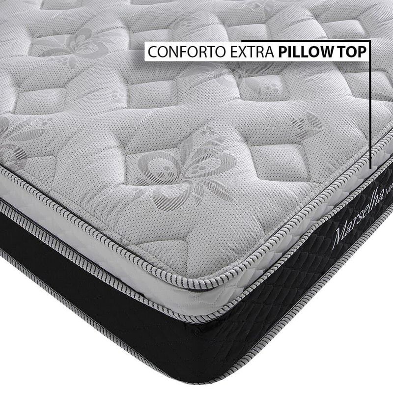 ESTRUTURA O Colchão Herval Marselha associa as molas Maxspring® às espumas Herval, que proporcionam toque confortável ao colchão, proporcionando ainda mais aconchego às suas noites de sono. As molas que o estruturam são entrelaçadas entre si formando um bloco único, que proporciona alto suporte aos usuários, entregando uma noite de descanso reparadora. Além das molas, em sua estrutura, há espumas Herval de alta densidade, que entregam toque confortável ao colchão. Sob seu molejo, há o Pillow Top One Side, que é uma camada extra de conforto, que anula a necessidade de virar o colchão para reestruturação das camadas de espuma.