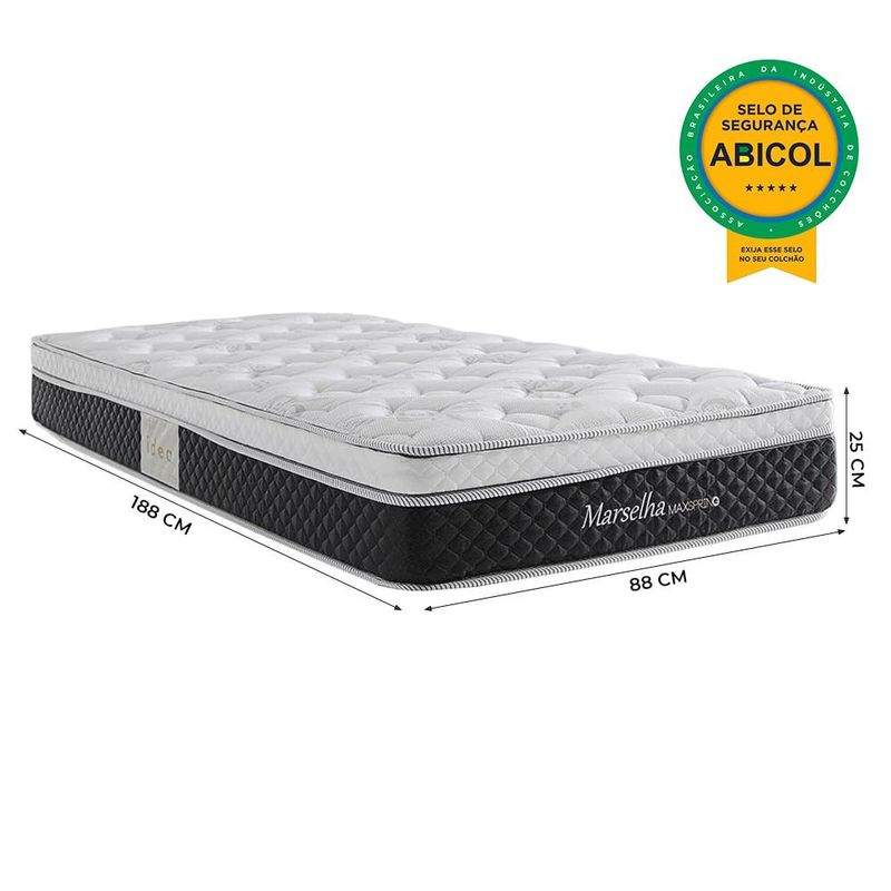 COLCHÃO HERVAL SOLTEIRO MARSELHA, 25X88X188 CM, MOLAS MAXSPRING Pensando em tornar seu dormitório fino e elegante, proporcionando toque macio e confortável às suas noites de sono, o Colchão Herval Marselha foi criado. Com molas Maxspring em sua estrutura, ele entrega firmeza e alto suporte aos usuários, proporcionando noites de sono reparadoras.