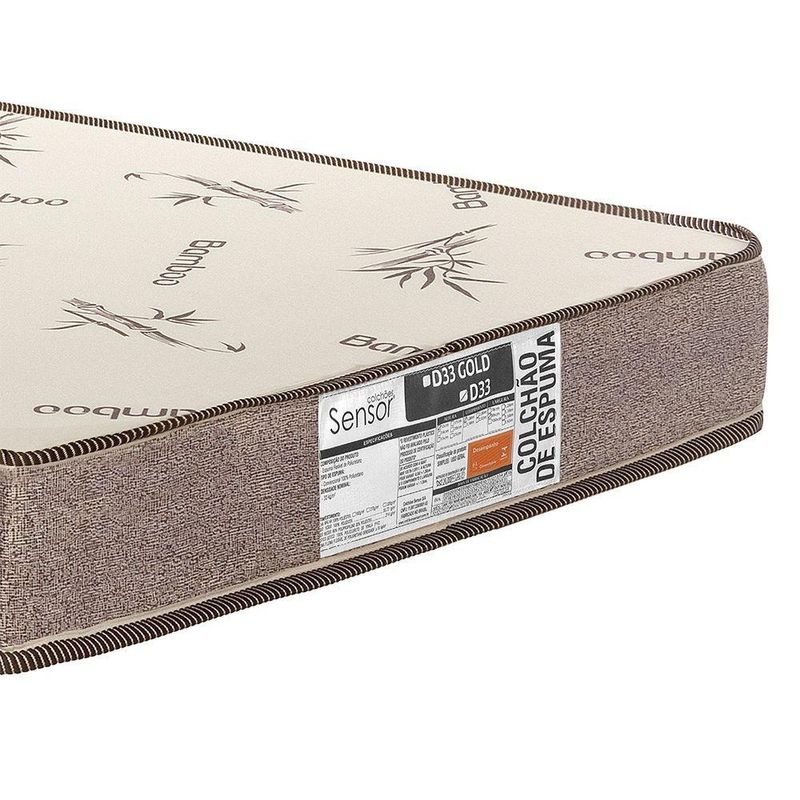 Colchão Solteiro D33, mais tecnologia, conforto e durabilidade! Lâmina de espuma convencional D33, estrutura externa faixa lateral do colchão em tecido 100% Poliéster, Espuma convencional de Poliuretano, sem Pillow.Tipo: Colchão Liso BordadoModelo: Solteiro SensorCor: BegeCaracterísticas:Conforto: FirmeDensidade: D33Linha GoldTecido: PoliésterAcabamento com debrum de 35mmTecido matelassê em manta de poliésterTratamento no tecido Anti Mofo, Anti Fungo e Anti AlérgicoPeso suportado por pessoa: 100kgDimensões do ProdutoAltura: 12cmLargura: 88cmComprimento: 188cmATENÇÃOAS IMAGENS SÃO MERAMENTE ILUSTRATIVAS E PODEM SOFRER VARIAÇÕES DE COR E PEQUENOS DETALHES DE ACORDO COM O SEU MONITOR, ILUMINAÇÃO DO AMBIENTE E ATÉ MESMO A SUA PERCEPÇÃO VISUAL.Colchão Solteiro D33 Todo Liso Sleep 88x12x188 Bege
