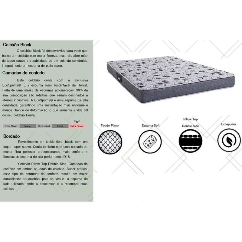 Colchão Solteiro Espuma D28 / Ag 65 Black Double Face (88x188x20) - Herval