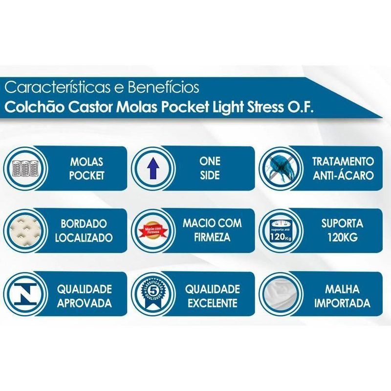 Colchão Solteiro Molas Ensacadas Pocket Gold Star Light Stress Oxygem New Pillow Top (78x188x27) - Castor