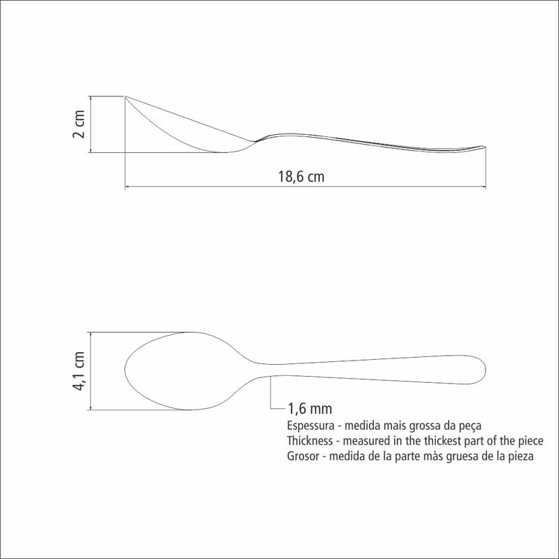 - Colher com bojo em formato simétrico e bordas cuidadosamente arredondadas, proporcionando maior conforto no uso;