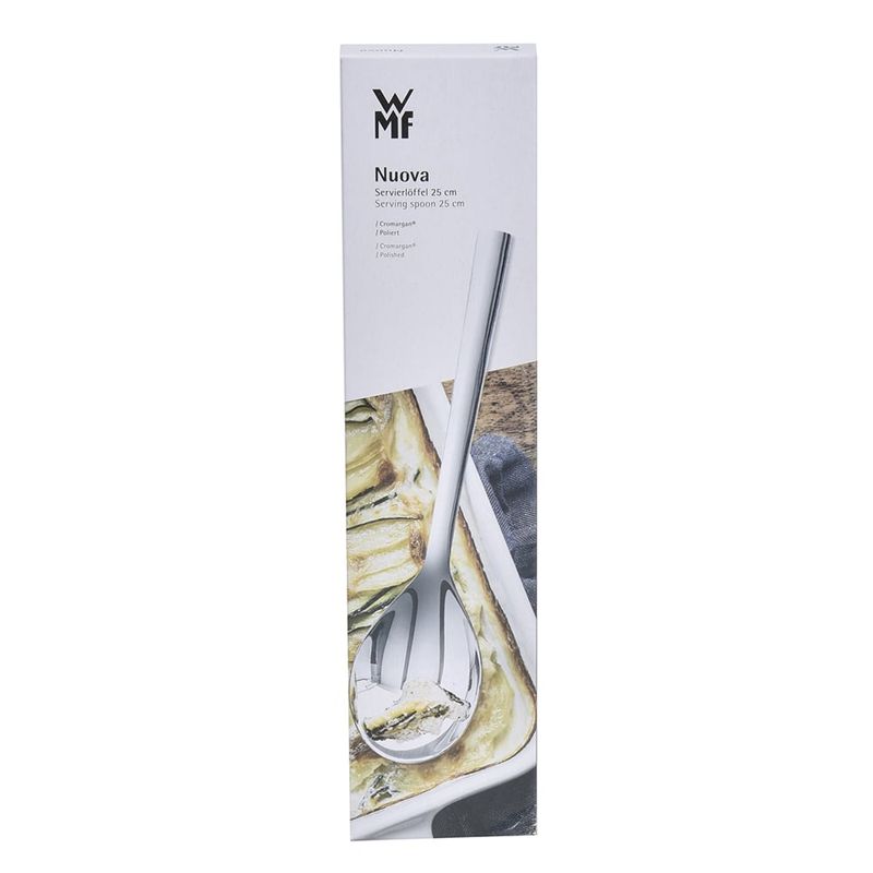 Sua mesa ficará muito mais elegante e charmosa com esta incrível colher para serviço. Diversifique e inove na hora de servir com os acessórios perfeitos da Alemã WMF. Ideal para legumes, arroz e refogados. A linha Nuova apresenta um novo conceito em talheres sofisticados para diversas ocasiões graças ao design atraente e atemporal. Cada utensílio é fabricado em aço inox Cromargan, material exclusivo da marca que confere alta resistência e brilho intenso e durável, mesmo após o uso prolongado.
