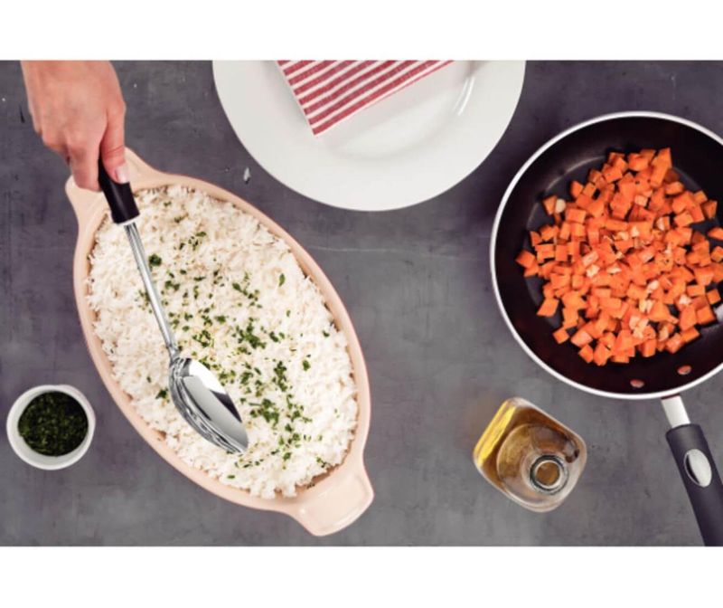 Pense em um arroz quentinho, preparado na hora e com aquele sabor caseiro que conquista qualquer um. A melhor maneira de servir essa deliciosa receita é utilizar a Colher para Servir Tramontina Utilitá em Aço Inox com Cabo de Polipropileno Preto, da linha Utilità. Tenha o melhor para sua cozinha em um utensílio que conta com resistente lâmina em aço inox e um elegante cabo em polipropileno, na cor preta. Alie, dessa forma, beleza e praticidade para servir suas receitas.