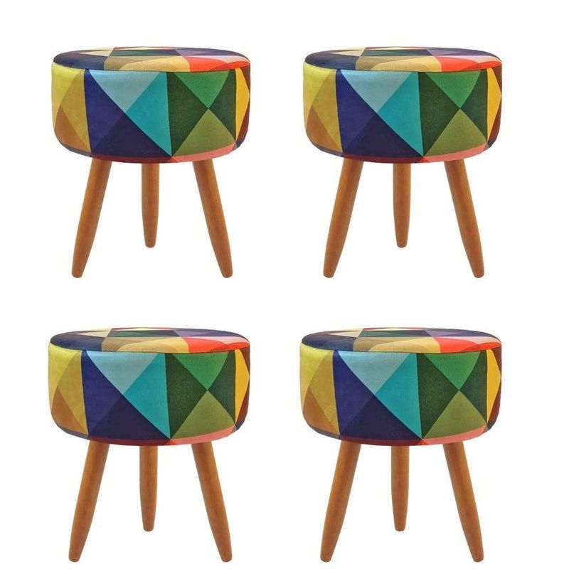 Combo 4 Puffs Decorativos Redondo Pé Palito-triangulo Colorido