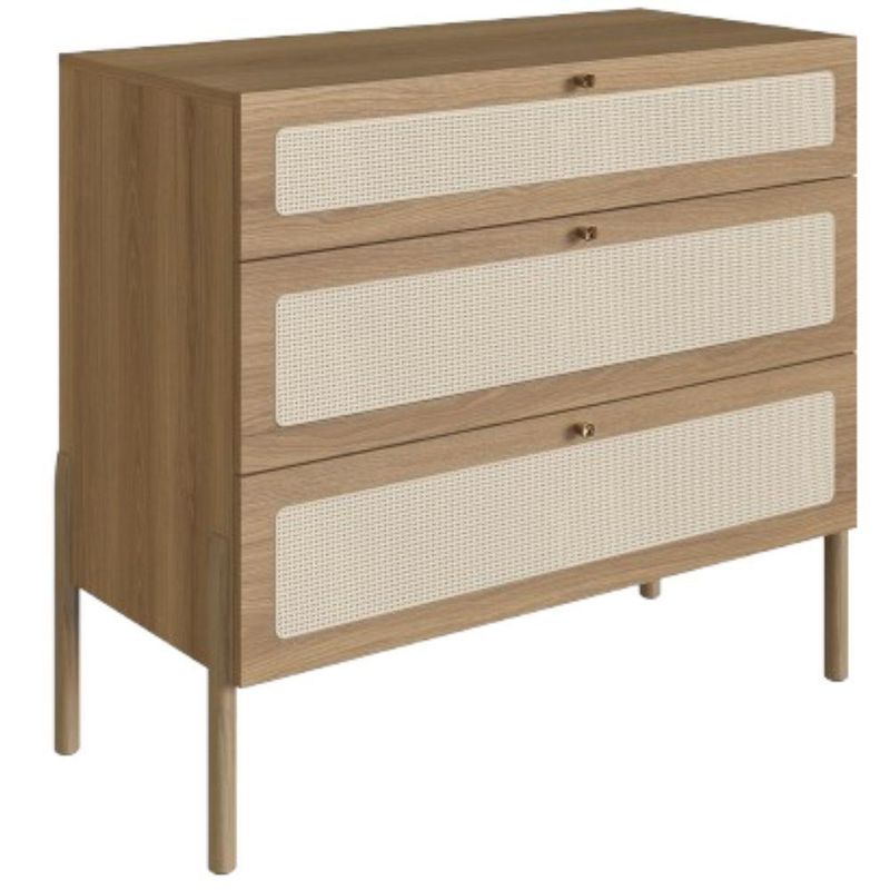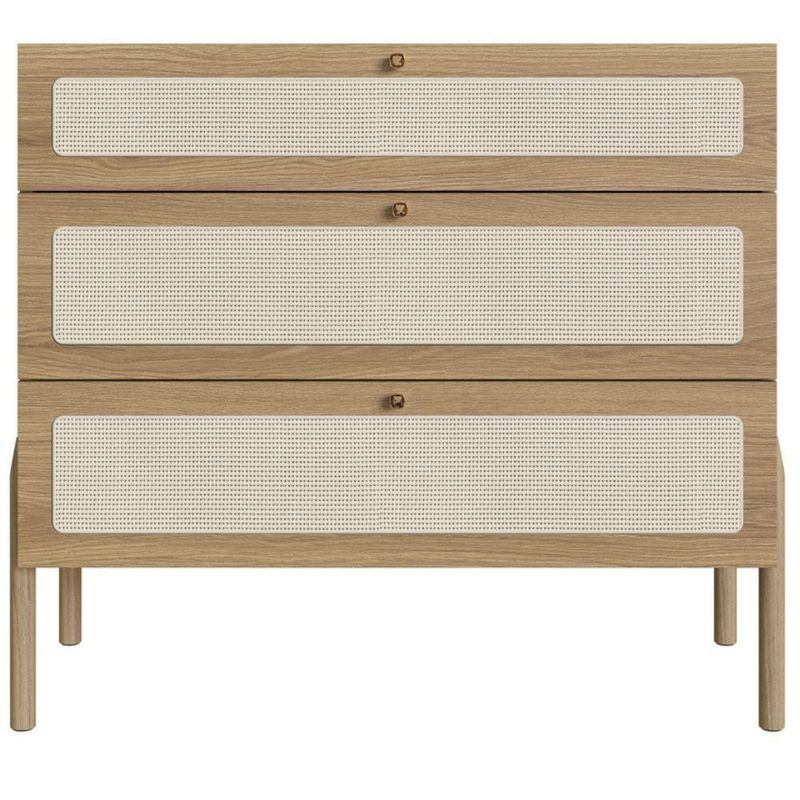 A Cômoda com Pés em Madeira Oslo - Hanover une funcionalidade, estilo e um traço artesanal marcante para compor o seu ambiente com elegância e leveza. Perfeita para quem busca organização sem abrir mão do design, esta cômoda é a peça-chave para o quarto, sala ou escritório.Sua estrutura é confeccionada em MDP com acabamento BP, garantindo durabilidade e fácil manutenção. O destaque fica por conta do seu charme único, proporcionado pelo design escandinavo minimalista e o detalhe sofisticado do aplique de tela sintética nas gavetas, que adiciona textura e um toque natural.A organização é facilitada pelas suas três gavetas com corrediças telescópicas, que asseguram abertura total e suave, permitindo acesso completo ao interior e maior aproveitamento do espaço. Os pés de madeira maciça elevam o móvel, facilitando a limpeza do ambiente e reforçando a estética clean e moderna. A cômoda possui uma excelente capacidade de carga, pois suporta até 14kg no tampo, ideal para apoiar luminárias, livros e objetos decorativos.