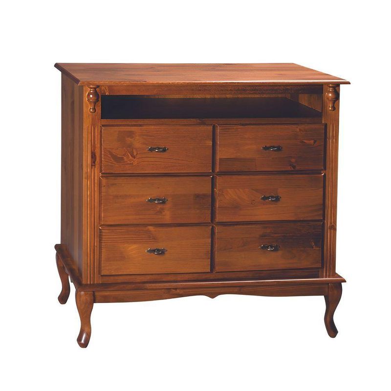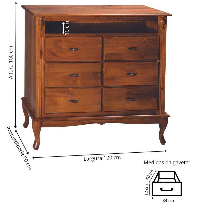 - 01 Cômoda de Madeira com 6 Gavetas e Nicho Antique