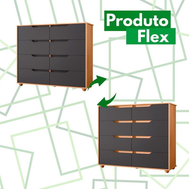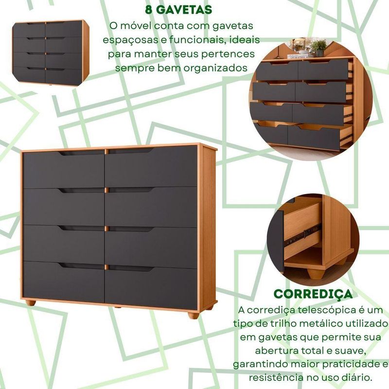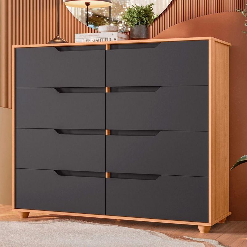 Comoda Doble 8 Gavetas Quarto Freijo Com Titanium Vistas Flex - Albatroz
