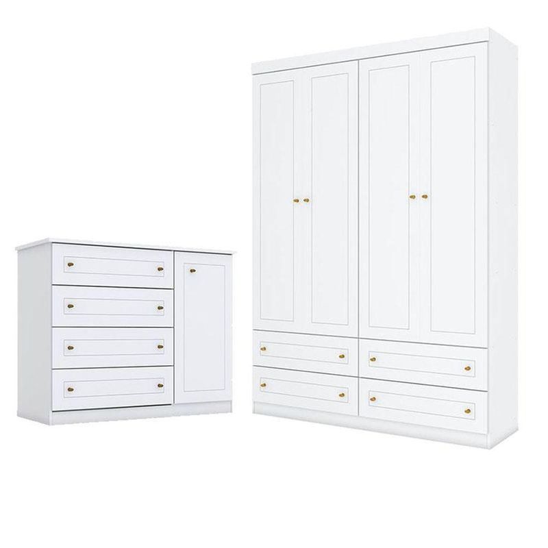 Cômoda e Guarda Roupa Infantil Mississipi 4 Portas Branco HP - Henn
