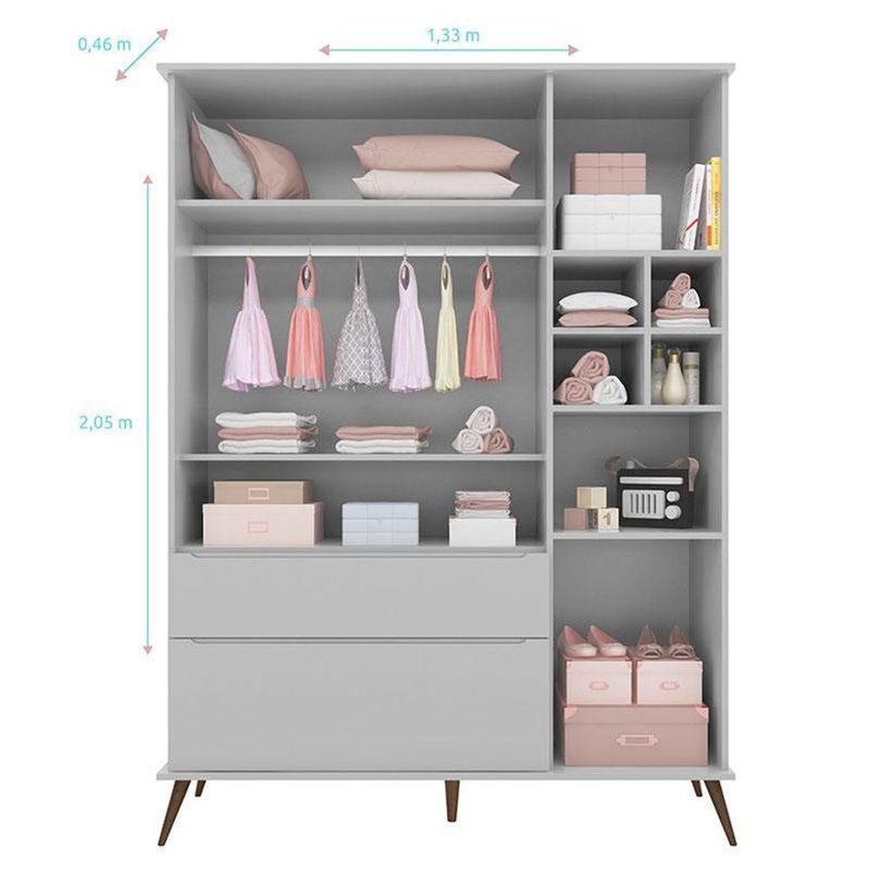 Cômoda E Guarda Roupa Infantil Retro Alice Cinza Acetinado - Phoenix Baby