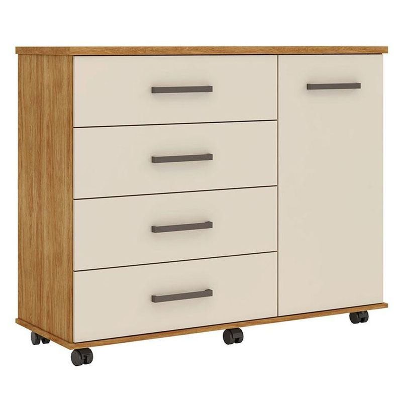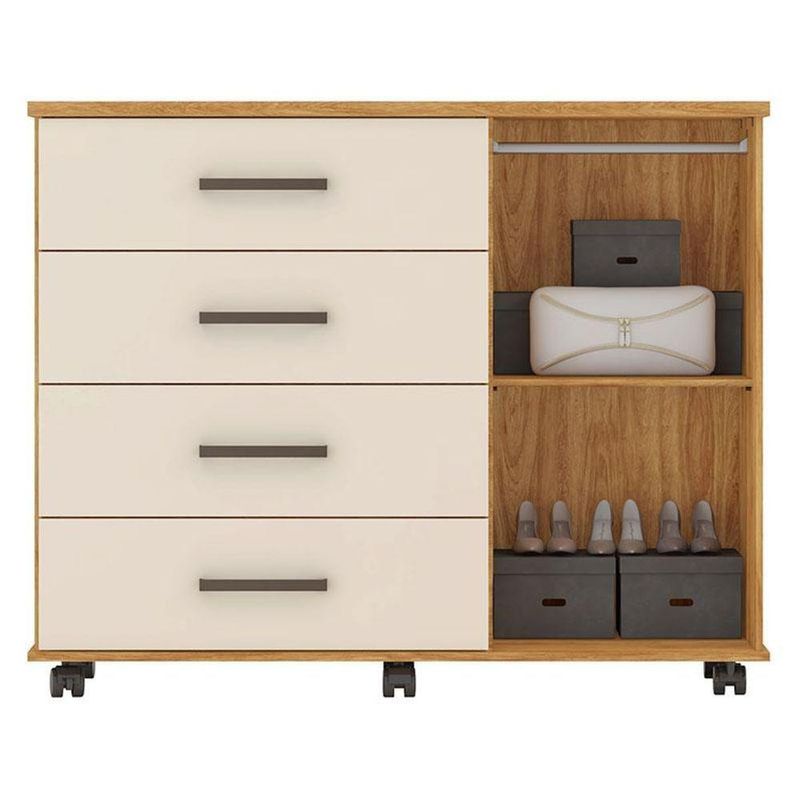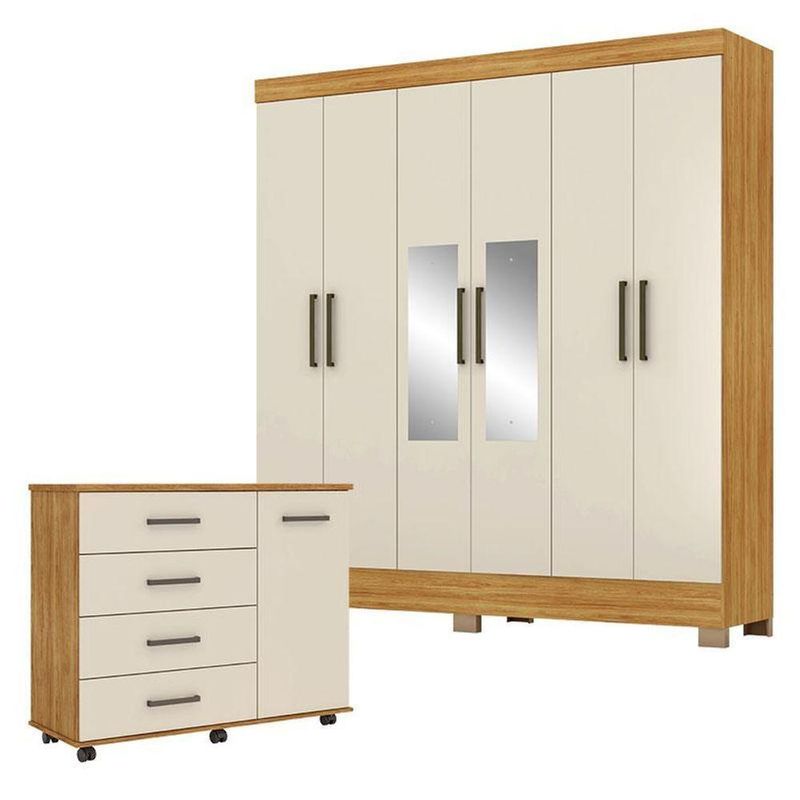 Cômoda Flora E Guarda Roupa Casal Prático Cinamon Touch Off White Com Espelho - Demóbile