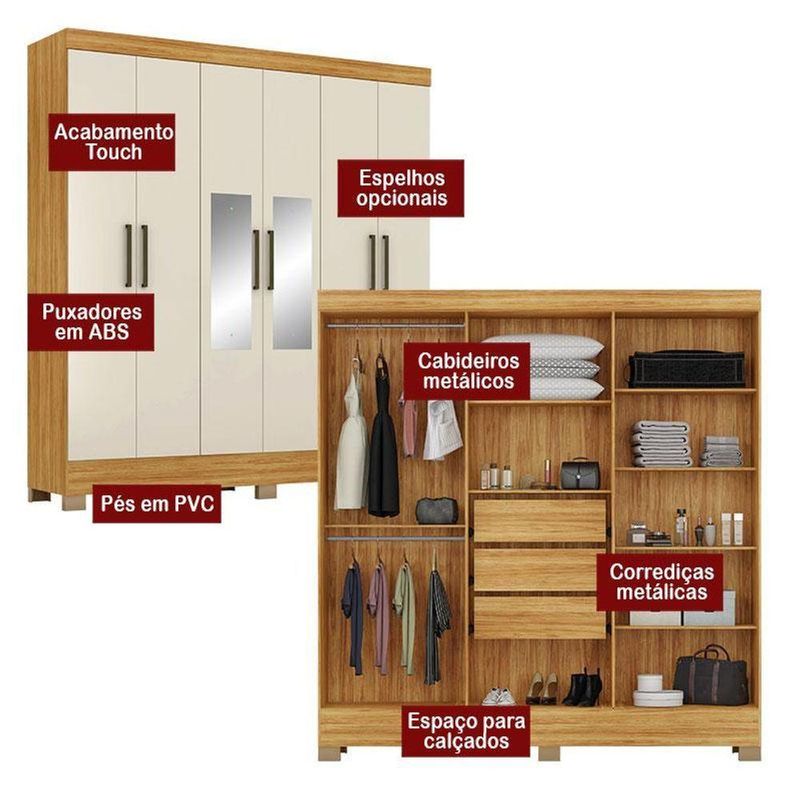 Profundidade: 45 cmGuarda Roupa Casal Prático Cinamon Touch Off White com Espelho – DemóbileCaracterísticas técnicas: