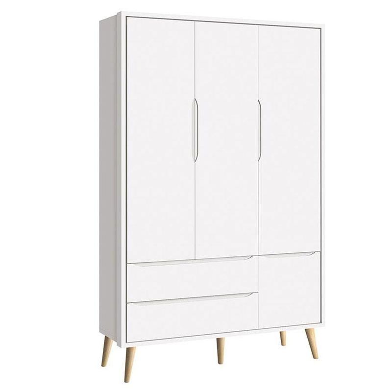 Guarda Roupa Infantil Theo 3 Portas Branco Acetinado com Pés Madeira Natural RellerCaracterísticas Técnicas:
