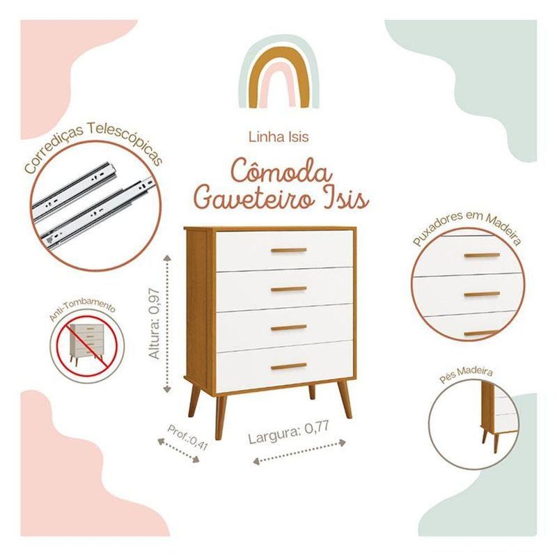 Cômoda Gaveteiro Infantil Isis Branco Acetinado Savana - Reller