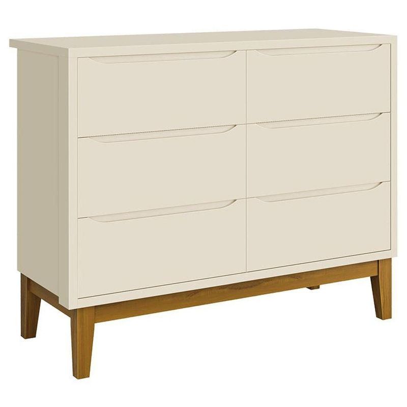 Cômoda Infantil 6 Gavetas Classic Areia Acetinado Com Pés Madeira - Reller