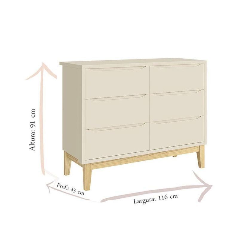 Cômoda Infantil 6 Gavetas Classic Areia Acetinado com Pés Natural RellerMamãe sabe aquela cômoda nem tão grandona nem tão pequena que sonhamos e buscamos tanto para decorar o quartinho do bebê? Agora nós a temos, a cômoda perfeita não só em design e praticidade como também em sua matéria prima de alta qualidade, desenvolvida pela Reller a Cômoda 6 Gavetas Classic vai ganhar o seu coração, confira as características e aproveite!Características Técnicas: