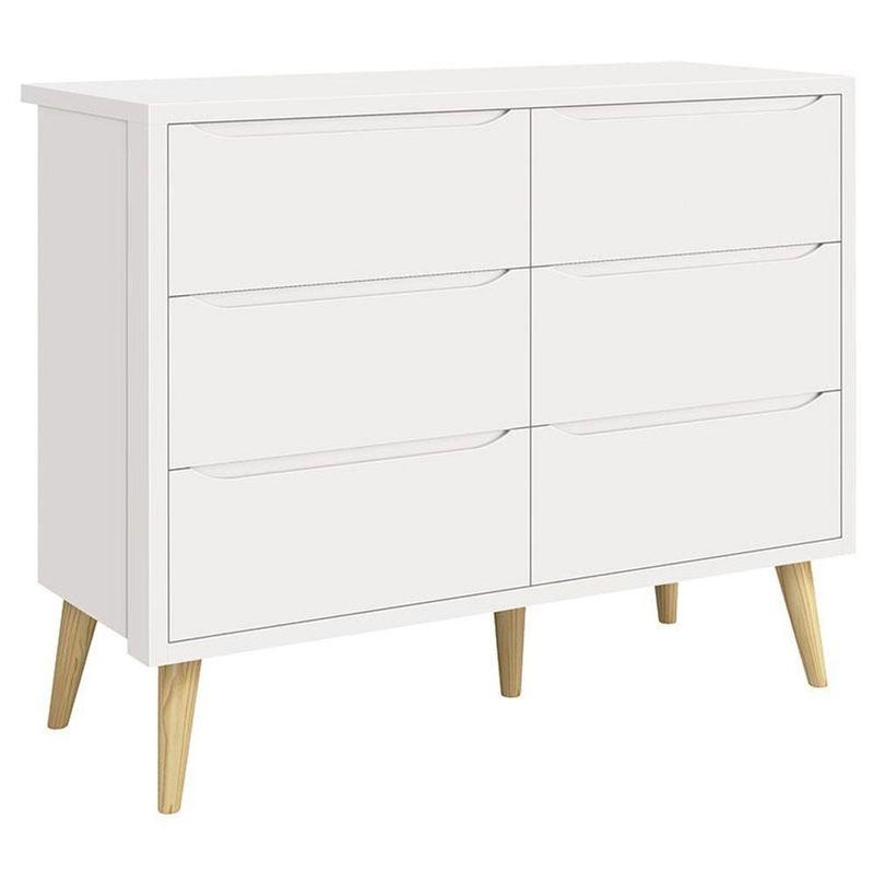 Cômoda Infantil 6 Gavetas Retrô Theo Branco Acetinado Com Pés Natural - Reller