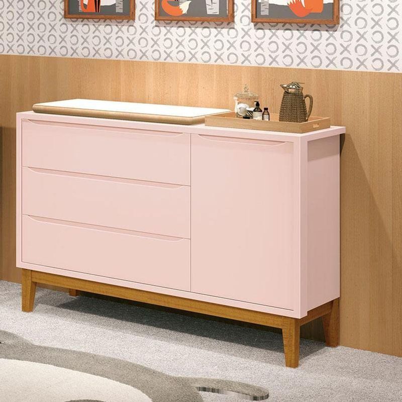 Cômoda Infantil New Classic Rosa Com Pés Madeira - Reller