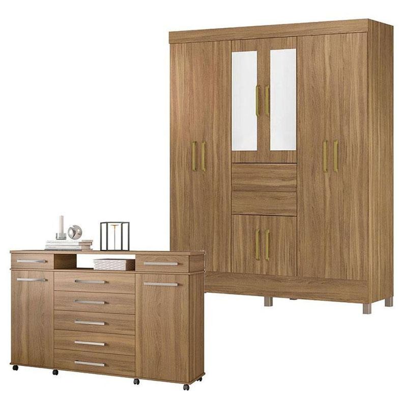 Cômoda London E Guarda Roupa Casal Munique Amêndola Touch Com Espelho - Demóbile