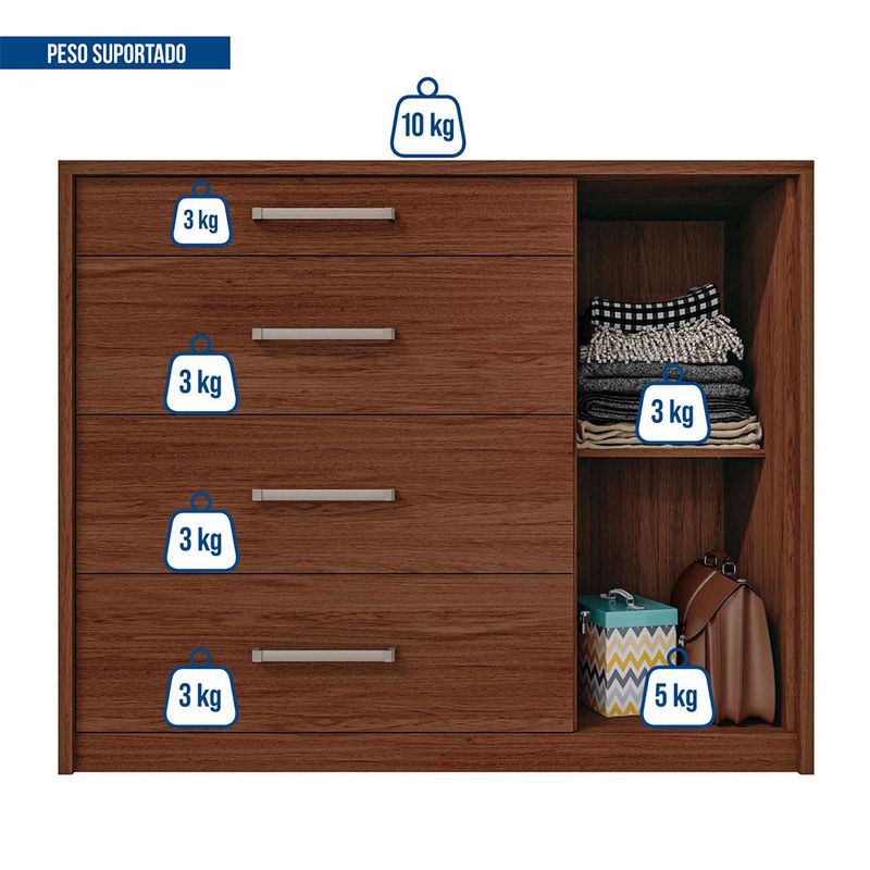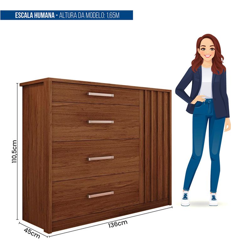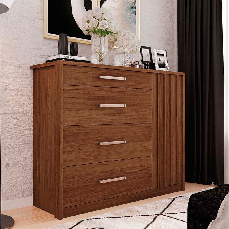 Cômoda Palacius è moderna, funcional e pratica. Acompanha 4 Gavetas e 1 Porta para melhor armazenamento além de um design ideal para o seu ambiente de descanso. Feito em MDP e HDF possui maior resistência e durabilidade ao móvel.