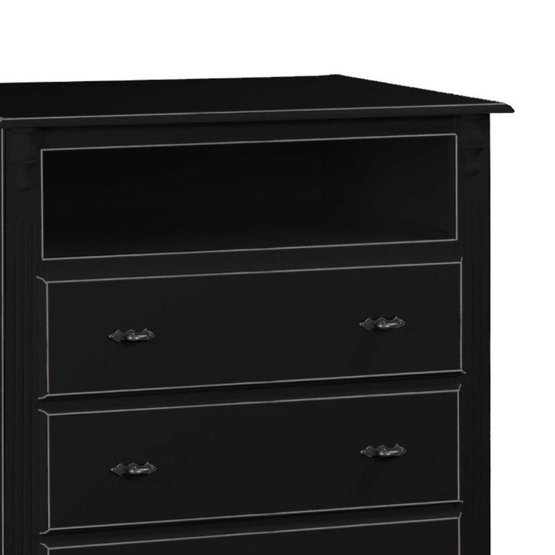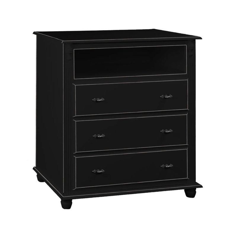 Cômoda Para Quarto Com 3 Gavetas Nicho E Pés Torneados - Preto Laca