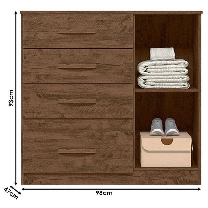 Começou a montar o seu quarto? Então apresentamos para você esta bela cômoda da linha Vênus. Com um design versátil, permite duas opções de cores na hora da montagem: castanho wood/ avelã, perfeito para combinar com diferentes estilos de quarto. Contando com quatro gavetas é equipada com corrediças metálicas, garantindo um deslizamento mais suave e seguro. Os puxadores em MDF complementam o visual moderno. Fabricado pela Moval, é desenvolvido em MDP de alta qualidade, sendo a escolha perfeita para deixar seu ambiente mais organizado, prático e cheio de charme, aproveite!Características Técnicas: