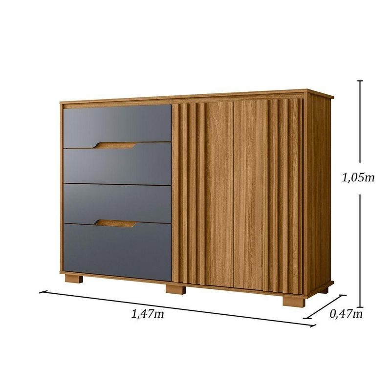 Comoda Texas 4 Gavetas Sapateira Freijo Com Cinza - Moval