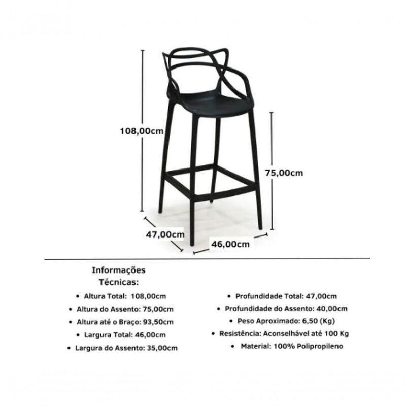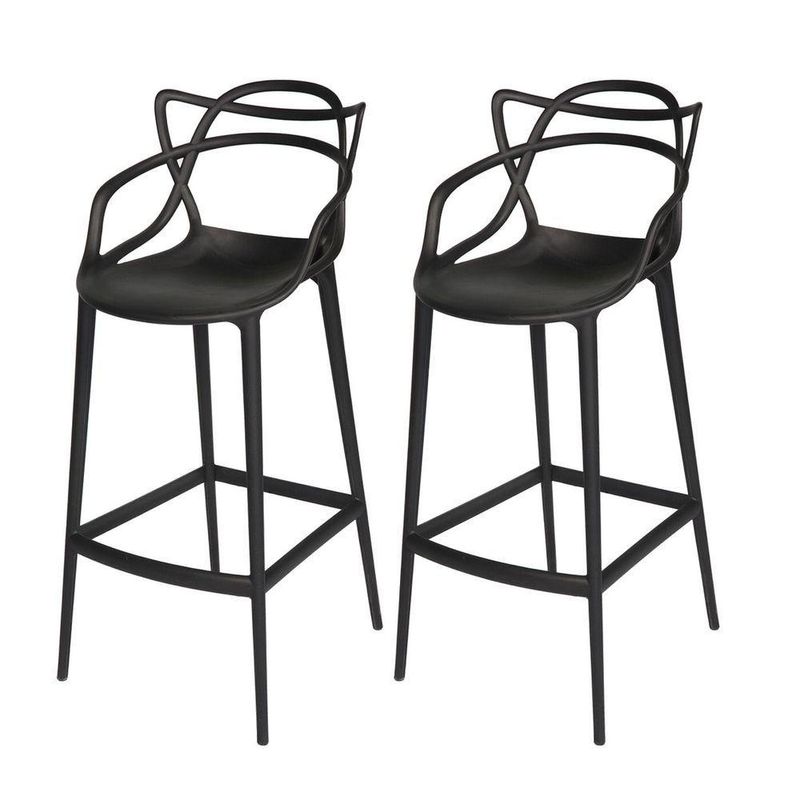 Conjunto 2 Banqueta Allegra Alta Master Empilhavel Resistente Preta Cozinha Americana Balcão Polipropileno