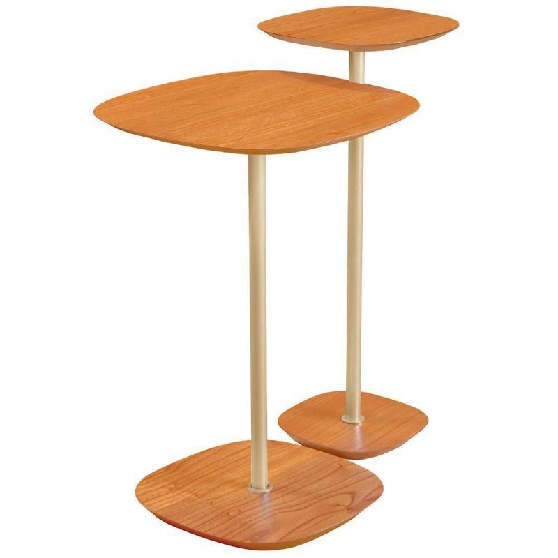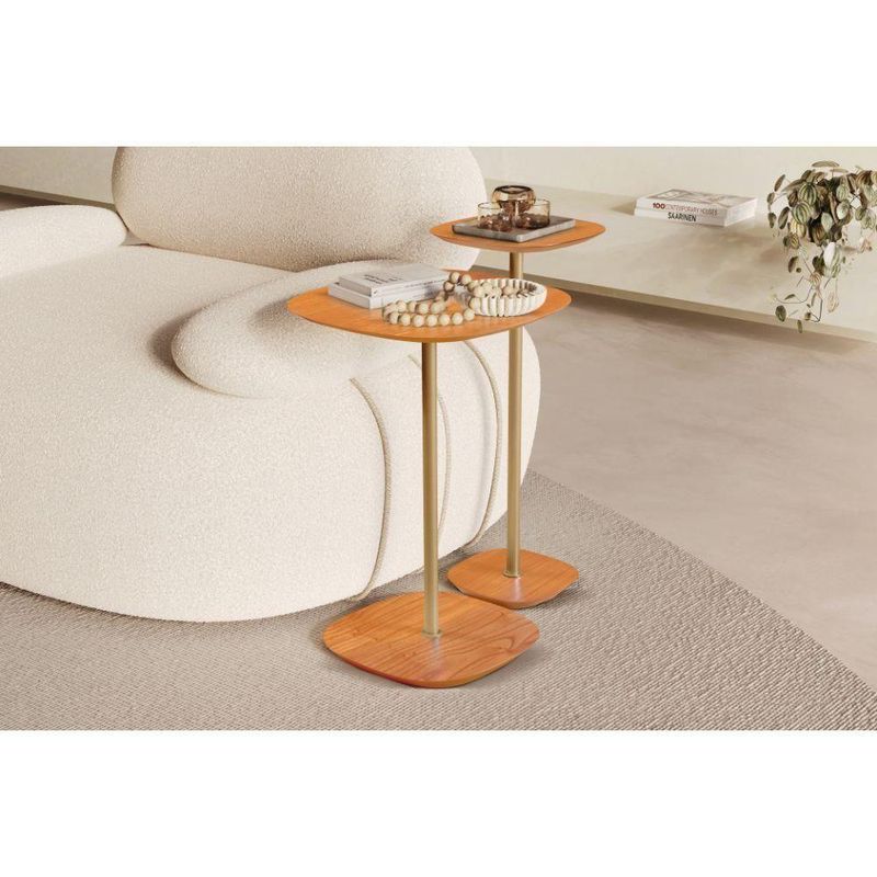 Conjunto 2 Mesa Lateral Florença Castanho Em Metal Ouro