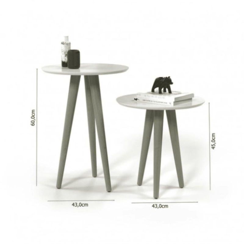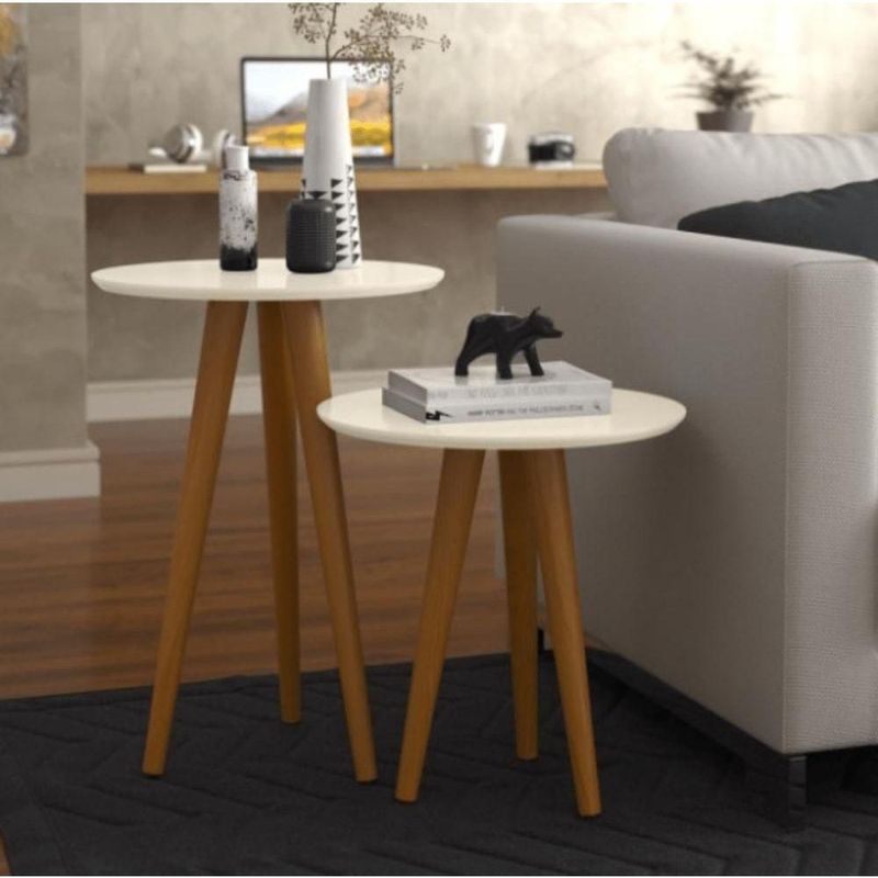 Conjunto 2 Mesas Laterais Pés Palito Em Madeira 4202 Sala Off White
