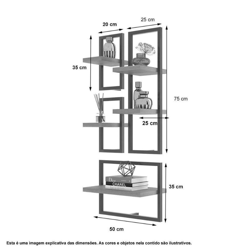 - Itens incluso: Um nicho 35x50x25cm, dois 35x20x25cm, dois 75x25x25cm kit montagem e manual de instrução.Informações Adicionais: