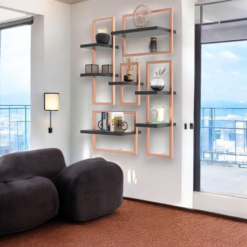 Conjunto 7 Prateleiras Industrial Preto/cobre - Pleno