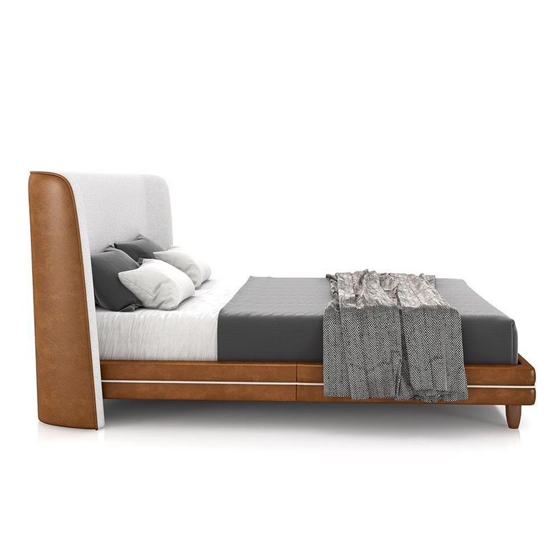 Conjunto Cama Com Cabeceira Queen Torres Pés Em Madeira Pu/bouclê Caramelo/off White G91 - Gran Belo