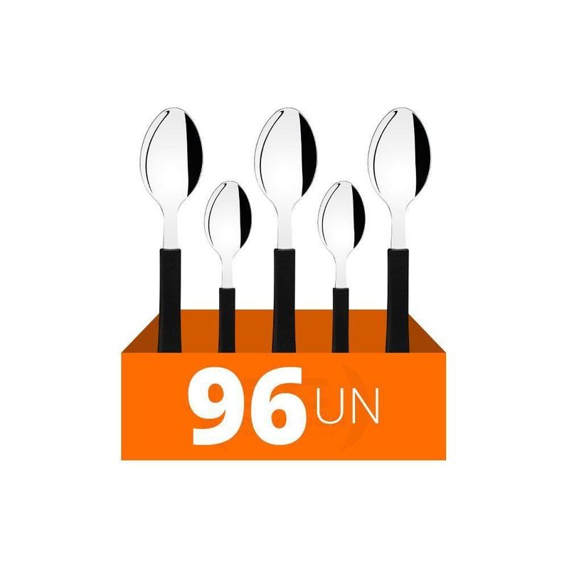 - 48 Colheres de Sobremesa Leme Com Lâmina Em Aço Inox Cabo Preto Cspbag - Tramontina 23186400