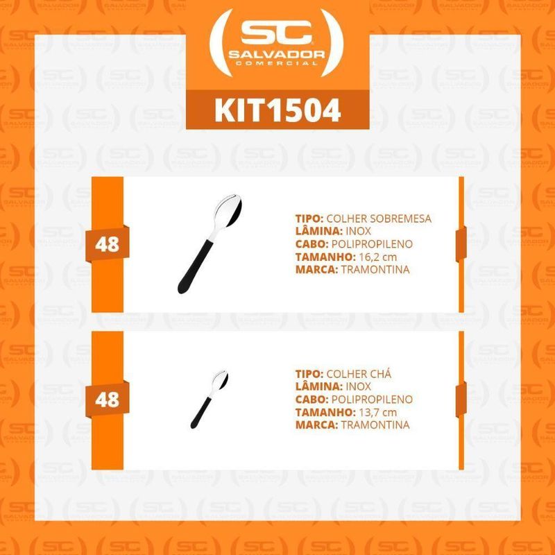 - 48 Colheres de Chá Leme Com Lâmina Em Aço Inox Cabo Preto Ccpbag - Tramontina 23187400