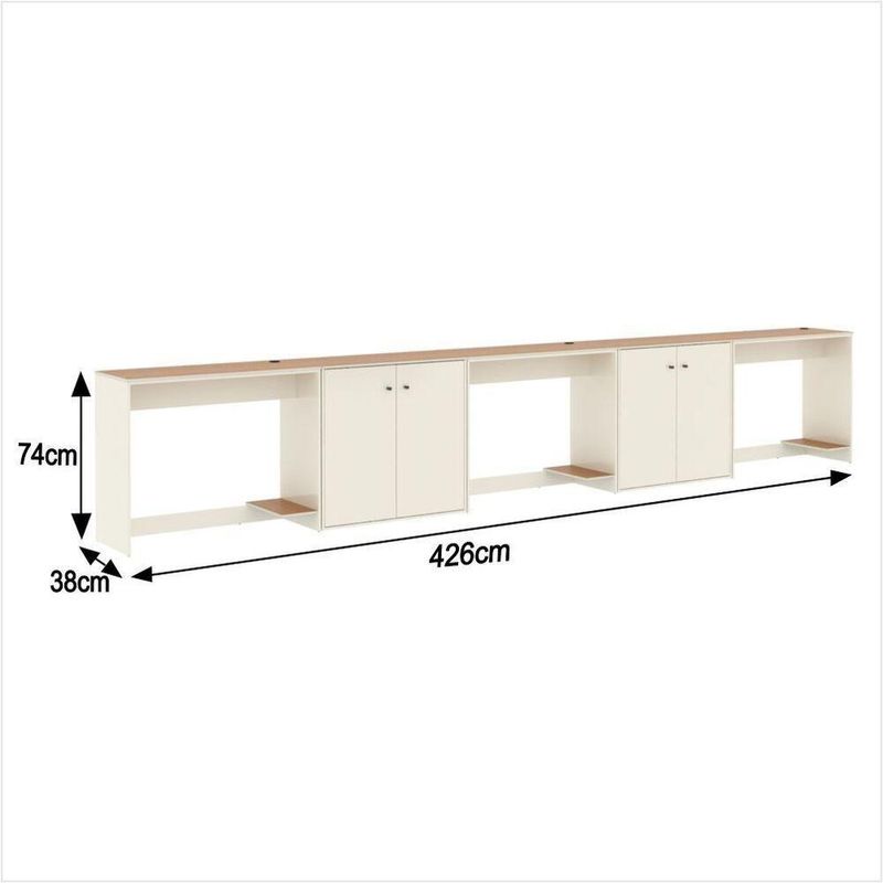 Conjunto De Escritório 5 Peças Tech Office 3 Mesas E 2 Apara - Off White E Cedro Off White E Cedro