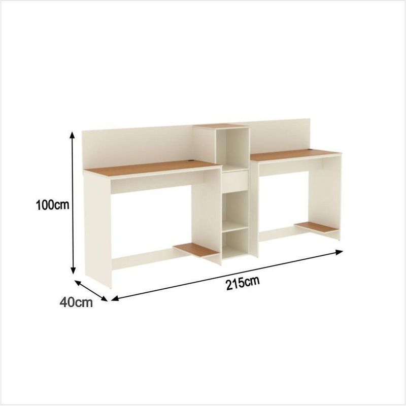 Eventualmente, se faltar qualquer peça ou acessório no produto, nos contate e enviaremos a peça/acessório sem custo adicional. Altura do Armário (cm): 99cm | Altura da Mesa (cm): 74cm | Largura do Armário (cm): 33cm | Largura da Mesa (cm): 91cm | Profundidade do Armário (cm): 28cm | Profundidade da Mesa (cm): 38cm | Altura dos Pés (cm): Não se aplica | Ambiente Principal: Escritório | Complexidade da Montagem: Média: pode ser montado por mais de uma pessoa e/ou necessite de maior conhecimento para montagem | Cor do Produto: Off White/Cedro | Cor Predominante: Off White | Cor Interna: Off White | Acabamento: Pintura UV | Acabamento da Gaveta: Pintura UV | Acabamento dos Pés: PVC | Escala de Brilho: Fosco | Escala de Brilho da Gaveta: Fosco | Garantia: 3 meses | Bandeja: Não | Estilo: Moderno | Itens Inclusos: 2 Mesa, 1 Armário, Manual de Montagem e Kits de Montagem | Linha ou Coleção: Tech | Possui Portas: Não | Inclui manual de montagem: Sim | Possui Rodízio: Não | Marca: ViaNossa | Material da Gaveta: MDP/MDF | Material dos Pés: PVC | Material Principal: MDP/MDF | Necessita Montagem: Sim | Origem do Produto: | Cor: Off White e Cedro