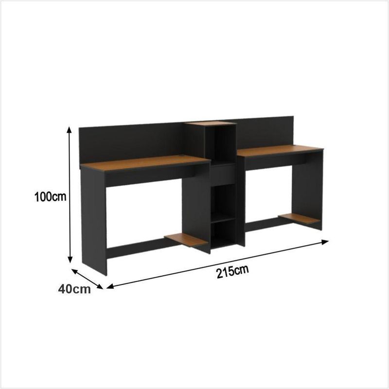 Conjunto De Escritório Tech 1 Livreiro E 2 Mesas 90cm - Vian - Preto E Cedro Preto E Cedro